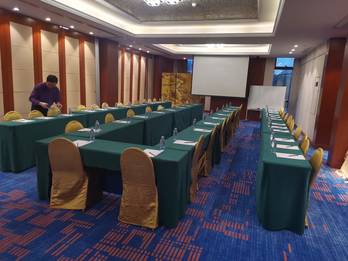 宴会型布局较为随意,有利于调动参会者发言的积极性,适合小组讨论。与会人员之间距离较近,容易产生近距离的交流感。